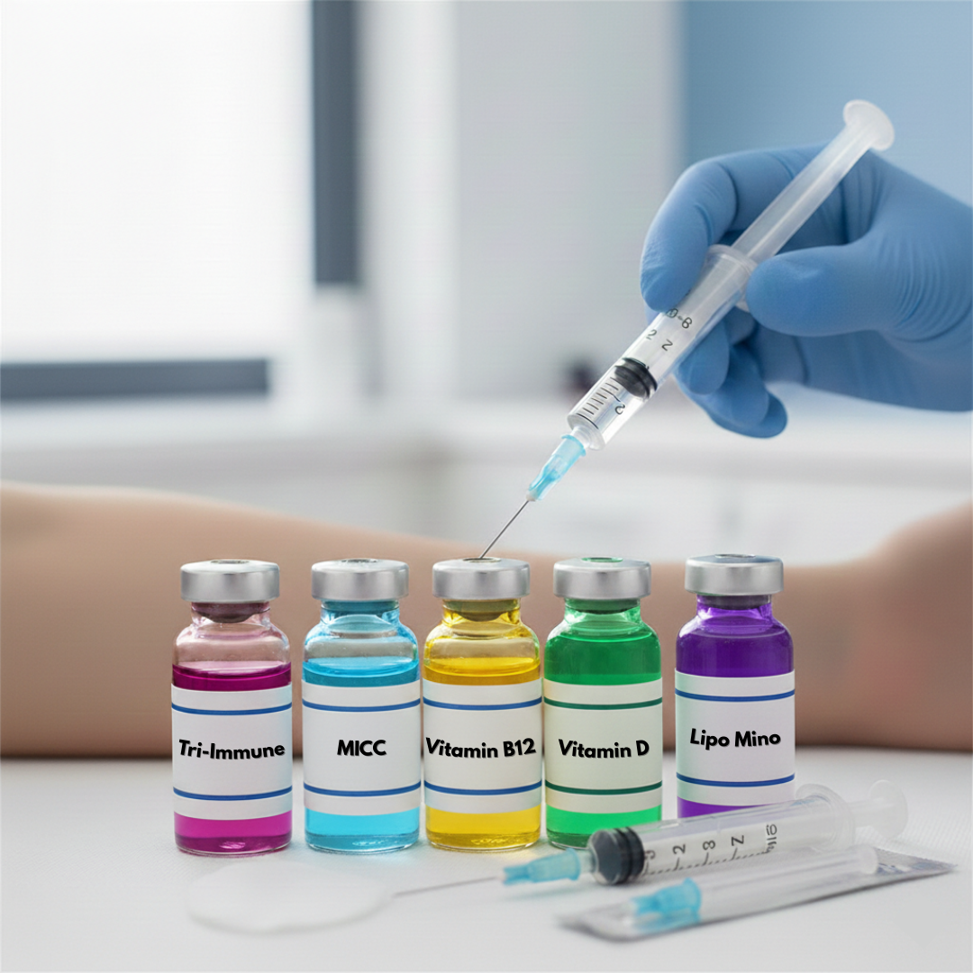 MICC: an injectable solution that supports fat loss by boosting overall energy, reducing fat deposits and accelerating metabolic processes. Often paired with Lipo Mino and weight loss injections for the most effective combination.